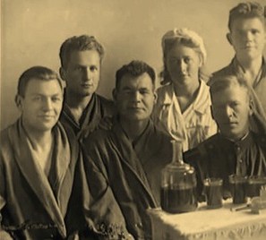 Приехал я в Москву. Дверь в комнату открыта. И вытащено буквально всё: остались только письменный стол, потому что обычный не вмещался (одиннадцатиметровая комната, она ещё такая длинная была), кровать и парочка стульев. А всё остальное: подзоры, посуда, гардероб – короче говоря, всё, что можно было вытащить, вытащено. Разворовали. Ну, не то, что разворовали, а годы тяжёлые были, я ничуть не виню, видно, очень прижало, не от хорошей жизни. Хоть он и жулик, может быть, настоящий, но всё-таки считаю, что есть какое-то оправдание. Ну, голод был. И вот лежу, сплю. А сплю почему? Потому, что есть хотелось, а карточки действовали только на тот день, на который существуешь, то есть на сегодняшний день тебе только продают. Продуктов нет дома, а жрать хочется страшно. Так вот поскорее спать ложишься, чтобы завтра утром уже новые талоны стали действовать. Бежишь в магазин. Там тебе полкило хлеба дадут. Ещё тогда крабы почему-то в ходу были – надоели всем. Что-то было, что можно было покушать. И вот лежу себе, сплю… И вдруг просыпаюсь от того, что меня целуют. А напротив у соседа две дочки были, такие строгие девчонки, хорошие, никаких вольностей не позволяли. А тут одна из них подходит и меня целует. Маша, она на фотографии есть, врачом была в центральной клинической больнице. Целует меня: «Гришка, победа! Гришка, победа!» Я просыпаюсь и никак не могу опомниться. Ну, кое-как оделся, выхожу на улицу. А на улице что творилось… все вышли, в домах, наверное, никого не оставалось. А я смотрю: такого, как я, одного поймали, и его народ кидает вверх. Смотрю и думаю: «Меня сейчас обязательно подхватят, не скрыться». И я как-то тихо-тихо весь светлый день просидел в доме. К вечеру уже вышел. Только вечером праздновал Победу в Москве, а днём испугался вот выходить…