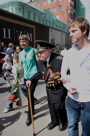 9 мая 2010 года. Площадь у Большого театра. Здесь каждый год по многолетней традиции собираются ветераны. Впереди медленно идет пожилой человек, бережно поддерживаемый под руки юношей и девушкой.