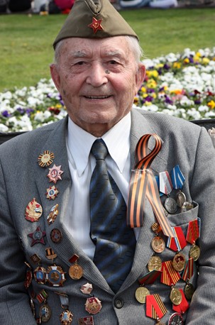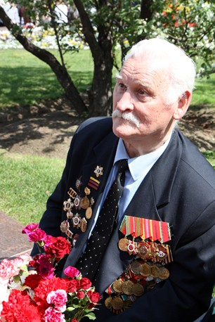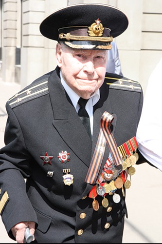 «Это наш дедушка, — доброжелательно откликаются молодые люди на просьбу сделать фото, — Попов Петр Васильевич, 95 лет. Капитан Первого ранга. Прошел путь от матроса до капитана. Воевал на Балтике».