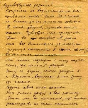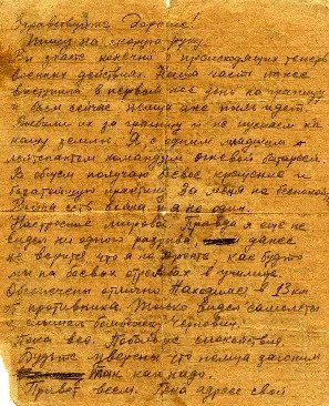 Обеспечены отлично. Находимся в 13 км от противника. Только видел самолеты и слышал бомбежку Черновиц. Пока все. Побольше спокойствия. Будьте уверены, что немца загоним так, как надо. Привет всем.