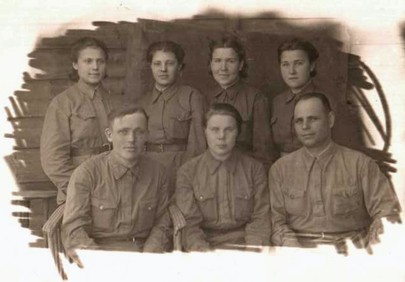 Григорий Тимофеевич Макиенко (сидит в первом ряду справа) с товарищами, 1943 г.