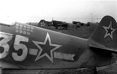 Январь 1945 года. Восточная Пруссия. Боевые самолёты французских лётчиков эскадрильи "Нормандия-Неман". Кресты на фюзеляже самолёта указывают количество сбитых ими фашистских самолётов.
