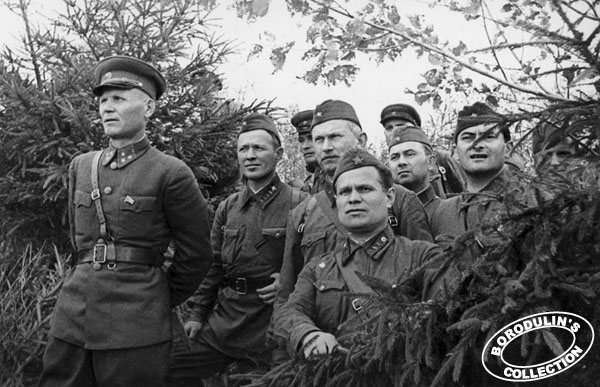 Писатели: М.Шолохов, А.Фаддеев и Н. Петров на фронте у генерала И.Конева