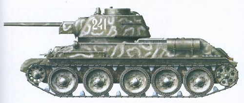 Т34/76. Башня машины камуфлирована мелкопятнистым камуфляжем (былой краской) . 1-ый Белорусский фронт, январь 1945 г.