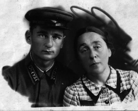 Чернаков Яков с матерью. На обратной стороне фото надпись: "Дорогие мама и Люба! Желаю Вам счастья и здоровья.Пусть это фотокарточка напомнит тебе мама,о твоём приезде на выпуск. Целую Вас.Яков. Крым.Севастополь. 8 июня 1941 г."