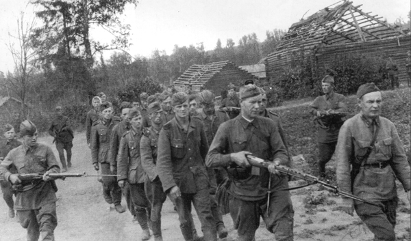 Колонна немецких пленных, захваченных 149-й стрелковой дивизией.