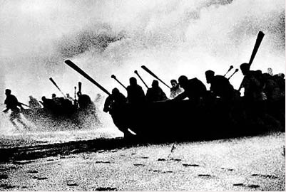 Вода была ледяной. На лодках и плотах, уцелевших от обстрела, солдаты старались попавших в воду вытащить. Сквозь грохот разрывов прорывались голоса тонувших, раненых и солдат, старающихся уцепиться за бревно, лодку, плот.