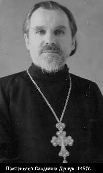 Митрополит Варшавский и всея Польши Дионисий рукоположил Владимира Душука во диаконы. В 1935 году он становится иереем и начинает служить в местечке Кореличи под Новогрудком (Белоруссия). За деяниями о. Владимира следила польская политическая полиция, которая собирала о нем материалы, готовя почву для его ареста и заключения в Березе-Картузскую политическую тюрьму. Но этому помешали события сентября 1939 года, когда часть Западной Украины и Белоруссии отошли к СССР, и в эти земли пришла Красная Армия. Летом 1941 года храм, где служил о.Владимир, собирались закрыть, а его вместе с семьей хотели сослать в Сибирь.