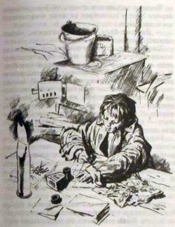 Гильза разгорелась, осветив просторную землянку, — у самых дверей я увидел худенького мальчишку лет одиннадцати, всего посиневшего от холода и дрожавшего; на нем были мокрые, прилипшие к телу рубашка и штаны; маленькие босые ноги по щиколотку были в грязи; при виде его дрожь пробрала меня.
