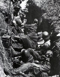 Чем мы не уступали противнику, так это в живой силе. Для пополнения непрерывно прибывали эшелоны с Москвы и Ленинграда с добровольцами коммунистами и комсомольцами. Это были, в основном, переодетые в военную форму лица интеллектуального труда: музыканты, преподаватели, служащие учреждений, которые не владели навыками обращения с оружием и способами самозащиты. На ходу приходилось их обучать пользованию винтовкой, умением бросать гранату. Нередко прямо «с коня» и без всякой подготовки новобранцы бросались в бой. Не нужно быть большим фантазером, чтобы предсказать результаты наступления такого подразделения. Следует напомнить, что боевые действия были не оборонительного, а наступательного характера, когда за каждую высоту или населенный пункт (деревню) велись упорные боевые действия. Некоторые населенные пункты по много раз переходили из рук в руки. За деревню Ушаково велись многодневные бои и 6 раз она переходила из рук в руки, когда в ночной рукопашной схватки противника выбивали из захваченной деревни или высоты, а днем противник возвращался в свои окопы и блиндажи. В одном из таких сражений поднимая пехоту в атаку, погибли комиссар 355 стрелкового полка А.Г. Гутник (в котором я проходил службу) и командир полка полковник Н.А. Шварев.