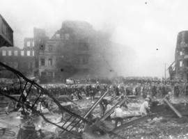 Вот когда фугасная упала на театр оперы и балета имени Кирова И обломила левую сторону здания, вот это был гром… Я бегал смотреть, как обтянутые бордовым плюшем, словно окровавленные, стояли в открывшемся крыле большого зала витые кресла. Осколки пробили их спинки, плюш вырвало, и мне было жалко этих раненых — театральные кресла, принявшие на себя такую беду. Работники МПВО не пустили меня к обрушившейся деревянной балке. А ведь это были бы прекрасные дрова, можно было бы напилить много чурбачков.