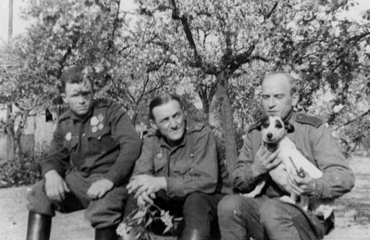ст. лейт. М.Е. Губонин, его водитель и вестовой. Апрель 1945 г. Бранденбург