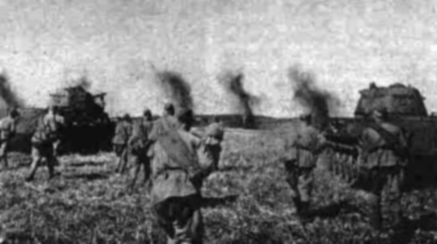 Наш батальон нес потери в личном составе… Их танки вновь появились на горизонте. Сколько? Двадцать…тридцать…Семьдесят! Расстояние заметно сокращается. Отчетливо вижу черные кресты на броне. По моему определению, оставалось метров пятьсот, не больше. И тут с нашей стороны ударила артиллерия. В какое-то мгновение задымили пять или шесть немецких танков. Потом еще один и еще…