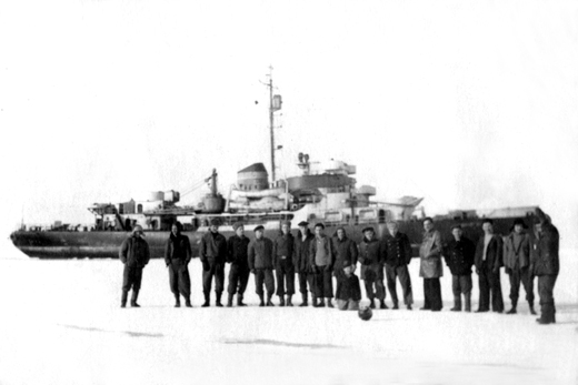 Вечером играли в футбол на льдине (есть фотография). Вдруг с судна мегафон: «Осторожно, к вам крадется медведь. Высылаю вахтенного с ружьем». Все обошлось.