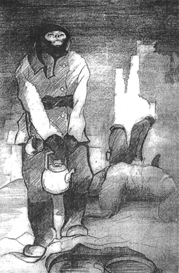 Забор воды из противопожарного люка. Художник О.А. Андреев