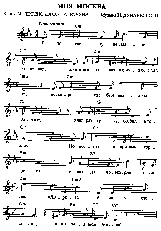 Стихотворение Марка Лисянского из двух строф, ставшее основой песни, появилось в ноябре 1941 года (в песню вошла только первая строфа и концовка второй). Стихотворение было напечатано в журнале «Новый мир». Весной 1942 года Исаак Дунаевский увидел это стихотворение в журнале и написал мелодию, попросив режиссёра своего ансамбля Сергея Аграняна дописать текст песни, которая получила всенародную известность в 1943 году. В 1944 году соавторы встретились друг с другом и согласовали текст песни.
