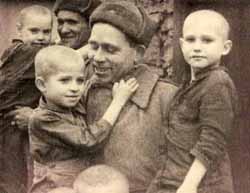 Постепенно вернулись угнанные в Германию. Рассказывали, как двое братьев пришли в родную Лугу: где их дом — не помнят, родителей в лицо не помнят… Помнят только, что отец работал машинистом паровоза. Пошли на станцию, спросили у первого попавшегося машиниста: «Как найти такого-то?» — «А он вам зачем?» — «А это наш отец!» И машинист едва сознание не потерял: он и был отцом этих ребят…