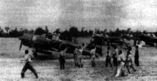 Когда я в следующий раз посмотрел на летное поле, мое сердце замерло. Самолеты, которые всего несколько минут назад были готовы взлететь, оказались изрешечены. Из некоторых тек бензин, другие уже горели. В любую секунду могли взорваться бомбы, патроны и топливные баки. Но не успели улететь истребители противника, как появились его пикировшики, и погром продолжился. Бомбы сыпались градом и рвались совсем недалеко от нас. Это заставляло еще больше боятъся, что взорвутся бомбы, подвешенные к истребителям. Положение было очень опасным, но нам оставалось только прятатъся за мешками с песком и ждать.