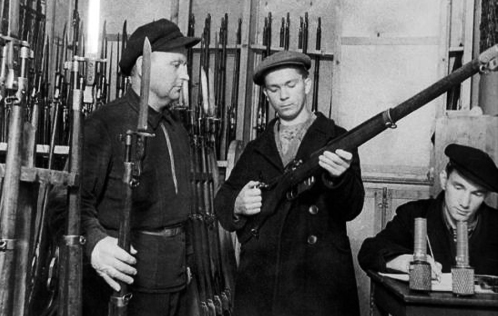 Фото М. Мицкевича: Ополченцы получают оружие, 1941г.