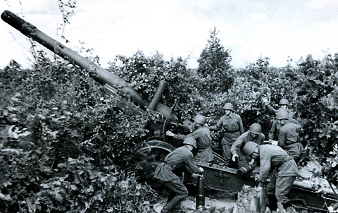 Сразу за Городком в лесном массиве были оборудованы позиции гитлеровской батареи 75-миллиметровых пушек. Они хорошо пристреляли местность и надежно перекрыли своим огнем дорогу на Полоцк. Прямой наводкой немцы подбили наш танк, уничтожили пушку-«сорокопятку» со всем ее расчетом, нанесли ощутимый урон пехоте. И тогда нашему артрасчету было приказано уничтожить вражескую батарею.