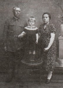Крестная Нины Капустиной Мария с дочерью Раей, умершей от голода в Ленинграде, и мужем, погибшим на фронте. 1941г.
