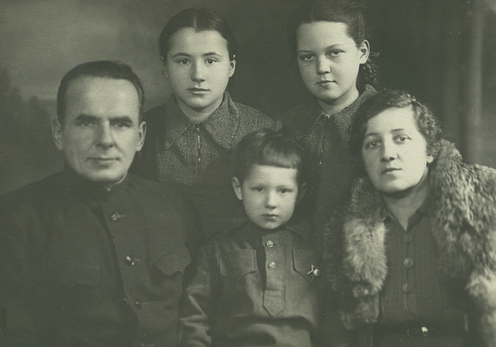 Не удивительно, что при описанных качествах отец, Мария Михайловна и моя мама Марфа Васильевна сумели в тяжелейших блокадных условиях выжить и не потерять троих детей. Дополнительные средства существования, которые они «добывали» и о которых я написала, обеспечили нам, трем взрослым и трем детям, выживание без дистрофии. Мы все были очень худыми, бледными, серьезными, всегда голодными, но не опухшими и без цинги и других болезней, сопровождающих последние стадии голода. Прилагаю нашу семейную фотографию, сделанную в фотоателье в конце 1943 года.