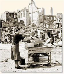 Война в Европе закончилась 7 мая 1945, после подписания представителями германского вермахта Акта о безоговорочной капитуляции в Реймсе, Франция. Германия была в руинах. Большинство ее городов были разрушены практически до основания, в транспортной системе царила неразбериха. Около 20 миллионов немцев остались без крыши над головой, более 5 миллионов беженцев скитались по стране.