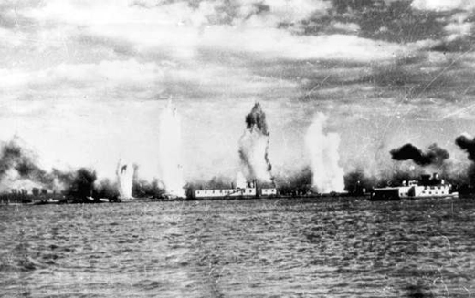 Сталинград и Волга в огне. Немецкая авиация наносит удар по переправе.В городе были видны отдельные очаги пожаров, то и дело гремела отдаленная артиллерийская канонада. А на берегу Волги, куда мы подошли, — полное столпотворение. Женщины с большими и малыми детьми, старики и старушки. Все с большими узлами и мешками, с душераздирающими криками, огромной толпой бегали по берегу от парохода к пароходу. Подбежит толпа к пароходу в надежде сесть и выбраться из этого ада, а он отчаливает, уже переполнен. Это было такое зрелище, от которого у нормального человека разрывалось сердце. Но и те суда, которые отошли от причала, подверглись бомбардировке и, не успев достичь противоположного берега, разваливались и со всеми пассажирами уходили на дно. Помощь им оказывать было некому.