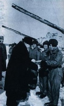 Я привез вам сердечный напутственный привет и благословение от Русской Православной Церкви и, прежде всего, от главы ее Патриарха Московского и всея Руси Сергия, по зову которого в начале прошлого года, в дни всенародного патриотического подъема по сбору пожертвований для защиты Родины, Русская Церковь с огромным воодушевлением собирала средства на создание своей танковой колонны.