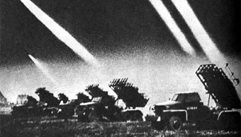 В августе начались воздушные тревоги. На ночь стали спускаться в бомбоубежище. Однажды ночью мы услышали непонятные свистящие звуки. Кто-то сказал, что это, наверное, опять какая-то провокация немцев, но нам, любопытным ребятам, надо все знать. Выбежали на улицу. Со стороны железнодорожного пути по небу неслись непонятные светящиеся свистящие полосы в сторону фронта. Незабываемое, замечательное зрелище. Как выяснилось позже, это были наши «катюши»…