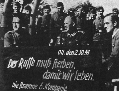 «Немцы по-разному воевали с англичанами, французами и американцами, с одной стороны, и с русскими — с другой, — пишет директор Института русской истории РГГУ Андрей Фурсов. — Это бросалось в глаза. Как заметил известный немецкий философ и политический мыслитель Карл Шмитт, во Второй мировой войне Германия вела две войны: обычную — на Западном фронте и совсем другую, тотальную, — на Восточном. Первая война имела обычные военные цели; целью второй было физическое истребление представителей другой этнической группы, уничтожение противника как Враждебного Иного».