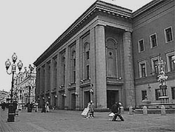 Страшное зрелище мы сняли на Арбате. Фугасная бомба, весом в полтонны, пробила крышу театра Вахтангова и разорвалась в зрительном зале. В эту ночь в театре дежурили пятеро сотрудников, и все они погибли. Утром я снимал свои первые военные кадры — следы первой бомбежки столицы. А к вечеру на площадях и прилегающих улицах смогли навести порядок. И мы снова снимали памятник, который опять стоял целехонек, и чисто подметенный асфальт.