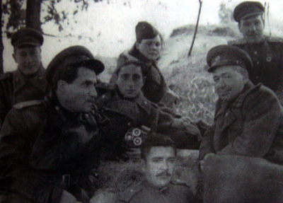 И. Малов, писатель К.Симонов и оператор М.Посельский с солдатами 62 армии
