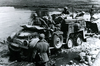 На восьмой день пути, преодолев огромный холм, мы добрались наконец до берега реки, вернее, до огромного количества пехотинцев, стоявших на берегу. Повсюду раздавались ругань и перебранки. Доносился также звук двигателей, отчего у нас поднялось настроение: раз двигатели работают, значит, где-то есть бензин. Мы знали, что в такой огромной стране без транспорта не обойтись, но даже и на нем не слишком далеко можно добраться из-за ужасных дорог. Но раз слышны моторы, значит, началась хоть какая-то реорганизация. В толпе виднелось множество машин, которые солдаты, несмотря ни на какие сложности, умудрились дотащить до реки.