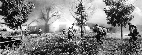Подняться и бежать вперед нечего было и думать; если кто-либо приподнимался или поднимал голову от земли — неминуемо погибал. Несколько офицеров вставали и пробовали поднять пехоту в атаку, но тут же падали убитыми или ранеными. Поддержанная артиллерией и танками, пошла вторая волна атакующих, но снова захлебнулась. Особенно мешал ДОТ, расположенный на правой стороне высоты; хорошо замаскированный, он не был виден. Пошла третья волна атакующих, оставшиеся в живых от первых двух атак солдаты тоже поднялись и от криков “Ура!” бросились вперед. Но заградительный огонь немцев был настолько плотен, что мы опять залегли, вжавшись в землю. Еще несколько раз атаковали высоту, но успеха не добились, только подходы к ней покрыли тела убитых и раненых.