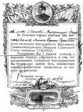 — «Ты победил артиллеристов США и Англии, что для нас очень важно. Объяви благодарность своей батарее и поезжай домой на 24 дня».