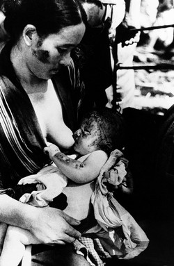 Среди них я обнаружил беременную женщину, родившую ребёнка из-за вызванного бомбой шока. Ребёнок издал свой первый здоровый крик из-под её обожжённого тела. Такая ужасная сцена не должна никогда повториться!!