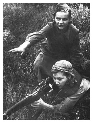 С восходом солнца на немецких позициях началось оживление. Мы заметили троих немцев: офицера с пистолетом в руке и двух солдат с термосами. Я взяла на прицел первого, Женя последнего. Оба выстрела слились воедино… Раздались крики. Из немецкого блиндажа выскочили еще трое немецких солдат. Мы удачно обстреляли и их. Нашему пулеметчику я не разрешила стрелять, чтобы не обнаружить нашу группу. Гитлеровцы начали бросать дымовые шашки. Мы этим воспользовались и благополучно вернулись к своим. Результат этой вылазки был таков: противник без боя оставил свои позиции и отступил на 2 километра. Мы с Женей очень радовались тому, что без солдатской крови отвоевали еще один кусочек нашей земли. Наступление советских войск продолжалось. С 14 января 1944 года взвод снайперов был задействован на особых заданиях вести интенсивную разведку сил и расположения огневых точек противника. Справились мы и с этим.