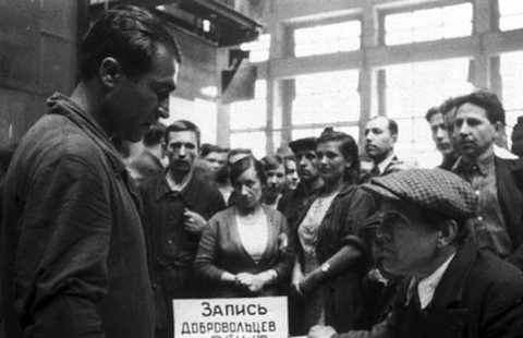 Третьего июля я сидел за своим рабочим столом, ко мне вошли секретарь комсомольской организации завода тов. Розанов и тов. Михайлов, председатель отдела пропаганды ЦИКа. Подошли ко мне и поздоровались, спросили, как самочувствие, затем Николай Розанов сказал: «Саша, ты уже был в военных действиях (я принимал участие в Финской войне — освобождении западных областей Белоруссии), ты пользуешься авторитетом среди пожилых и молодых, а поэтому ты должен возглавить запись в Народное Ополчение». С моей стороны возражений не было, и мы все вместе вышли из корпуса на заводскую площадь.