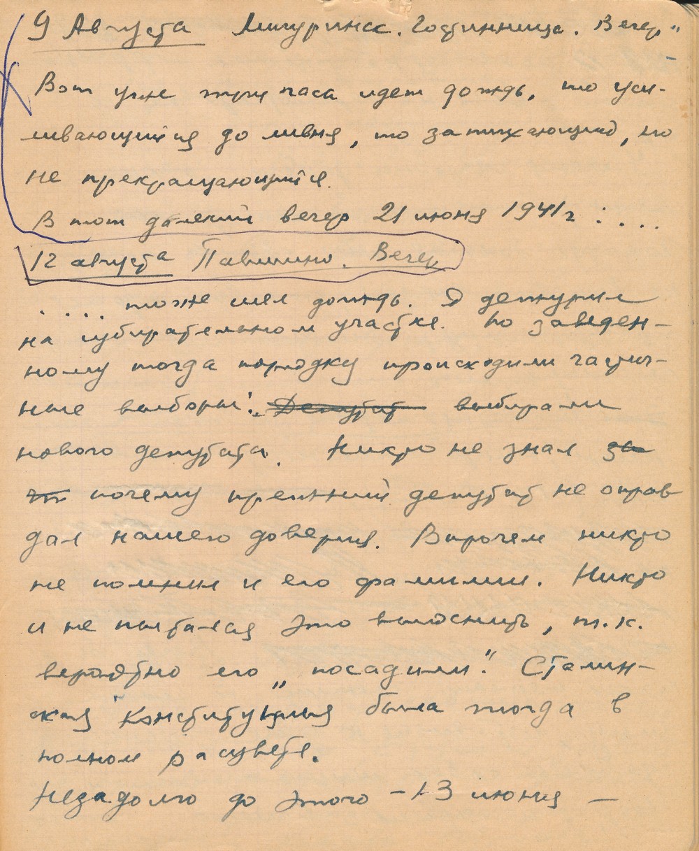 В тот далекий вечер 21 июня 1941 г. тоже шел дождь. Я дежурил на избирательном участке. По заведенному тогда порядку происходили частичные выборы: выбирали нового депутата. Никто не знал почему прежний депутат не оправдал нашего доверия. Впрочем никто не помнил и его фамилии. Никто и не пытался это вспомнить, так как вероятно его «посадили». Сталинская конституция была тогда в полном расцвете.