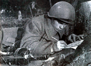 Придя в овин, Мамочкин увидел Травкина, который сидел у старой молотилки с карандашом в руке, собираясь писать письма матери и сестре. Мамочкин вдруг побледнел и тихо подошел к лейтенанту. В глазах Мамочкина появилась необычная робость. Травкин с удивлением посмотрел на него.